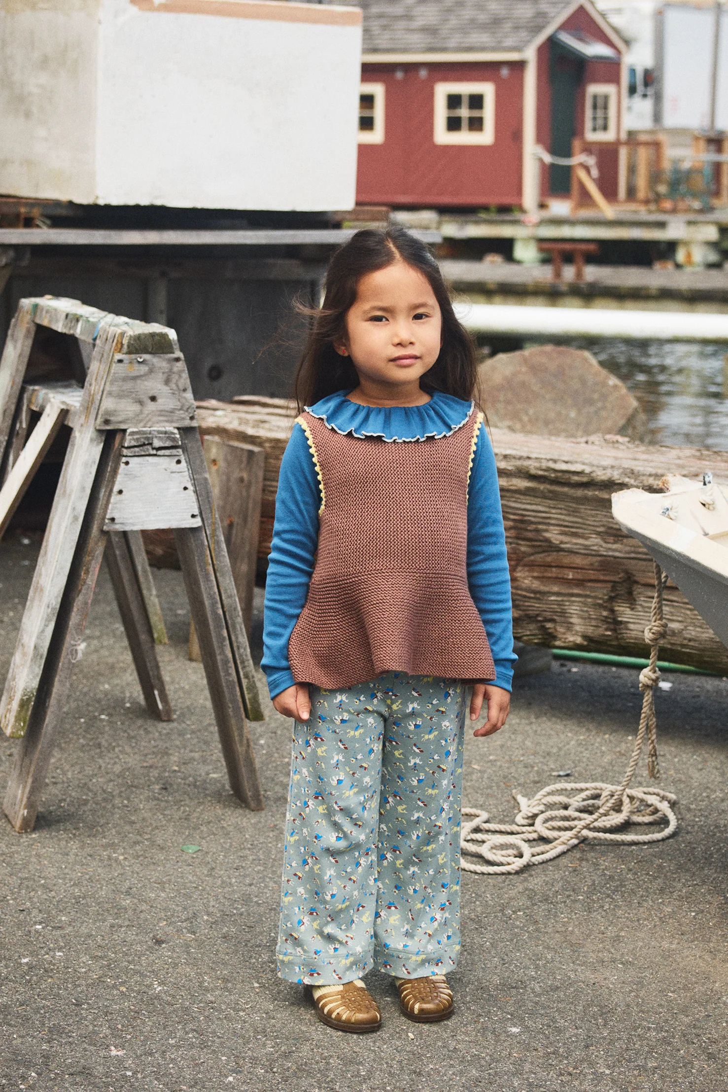 A fitted pull-on pant in organic Pima cotton, featuring a slight A-shaped flare, front pockets, and a soft banded elastic waistband.
